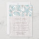 Convites apenas para recepção de madeira caiada de branco conchas com um design rústico e elegante de madeira caiada de branco com uma paleta de cores azul e bege, apresentando uma ilustração do contorno de conchas ao longo da parte superior. Os detalhes da sua união e recepção são impressos personalizados em marrom e bege sobre o fundo de madeira caiada de branco. Estes convites de recepção de casamento com tema conchas são perfeitos para as celebrações pós-casamento na praia. Cartões de RSVP e outros itens correspondentes estão disponíveis.