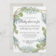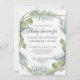 chá de fraldas neutro em relação ao gênero com a mão de folhagem de folha recolhida de madeira pintada em aquarela e um fundo de conselho de madeira de cinza no verso. Uma espreitadela aqui e ali de uma armação de ouro geométrico por baixo. Direitos autorais de trabalho de arte de Watercolor, Audrey Jeanne Roberts.