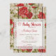 Um charmoso convite de chá de fraldas rústico que apresenta rosas de madeira em fundo de madeira com armação de rendas brancas. Este doce convite de chá de fraldas é perfeito para chá de fraldas, menina ou garoto neutro em sexo.