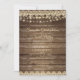 Um convite de casamento rústico, por país, com um fundo de prancha de madeira, rendas creme/bege e e luzes de cordas brilhantes complementam casamentos ao ar livre, no país, no oeste, no celeiro e/ou relaxados. Todo o texto é editável (exclua qualquer texto de amostra para deixar o vazio) e o estilo, tamanho, cor e posicionamento da fonte podem ser alterados para atender às suas necessidades, clicando na guia "clique para personalizar mais". O verso do convite apresenta o mesmo fundo em placas de madeira e oferece um lugar para acrescentar informações adicionais. Entre em contato com o designer se quiser fazer alguma modificação ou se quiser coordenar itens para completar o seu conjunto de casamento.
