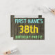 Este design convite de aniversário de divertido apresenta uma mensagem como "A 38ª FESTA DE ANIVERSÁRIO do FIRST-NAME!", onde o nome pode ser personalizado, na frente. O fundo apresenta um padrão de aparência rústico, castanho e falso em grãos de madeira. O texto de mensagem personalizável na frente apresenta cores como azul, amarelo e verde, e tem uma aparência inspirada pelo texto pintado e estêncilhado. A parte traseira contém uma mensagem personalizada que pode incluir detalhes relevantes sobre a festa de aniversário, como quando e onde ela está sendo mantida, juntamente com qualquer outra informação que seja importante. Convites de festas de aniversários como esta podem ser uma maneira divertida de convidar a família e os amigos para uma festa de aniversário que está sendo realizada para alguém que está celebrando seus trinta e oito anos. [~Z0000291]