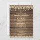 Um convite de casamento rústico, por país, com um fundo de prancha de madeira, rendas creme/bege e e luzes de cordas amarelas brilhantes complementam casamentos ao ar livre, no país, no oeste, no celeiro e/ou relaxados. Todo o texto é editável (exclua qualquer texto de amostra para deixar o vazio) e o estilo, tamanho, cor e posicionamento da fonte podem ser alterados para atender às suas necessidades, clicando na guia "clique para personalizar mais". O verso do convite apresenta o mesmo fundo em placas de madeira e oferece um lugar para acrescentar informações adicionais. Entre em contato com o designer se você quiser personalizar ou quiser coordenar itens para completar o seu conjunto de casamento.