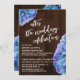 Aqui está uma escolha casual e rústica para as necessidades da sua celebração pós-casamento. Sobre um fundo de madeira escura, coloquei um gráfico de tipografia que diz "celebração após o casamento", apresentando uma fonte de letra manuscrita moderna. Sobre a imagem de fundo, coloquei flores de água representando hortênsias em azul, lilás roxo e leves toques de verde. Gire as flores para mais ou menos das tonalidades que você preferir, para combinar com a sua paleta de cores. Use os campos do modelo para adicionar seus próprios detalhes e clique para personalizar ainda mais se desejar fazer quaisquer modificações adicionais. Todas as camadas estão desbloqueadas para permitir todo o controle de posicionamento e dimensionamento que você desejar.