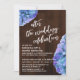 Aqui está uma escolha casual e rústica para as necessidades da sua celebração pós-casamento. Sobre um fundo de madeira escura, coloquei um gráfico de tipografia que diz "celebração após o casamento", apresentando uma fonte de letra manuscrita moderna. Sobre a imagem de fundo, coloquei flores de hidrângea em aquarela com tons de azul, roxo lilás e leves toques de verde. Gire as flores para mais ou menos dos tons que preferir, para combinar com a sua paleta de cores. Utilize os campos do modelo para adicionar os seus próprios detalhes e clique para personalizar ainda mais se desejar fazer quaisquer modificações adicionais. Todas as camadas estão desbloqueadas para permitir todo o controle de posicionamento e dimensionamento que desejar.
