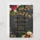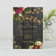 Um belo convite de casamento rústico e tradicional, com flores no outono, buquês de burgundy escura e rosas de creme de pêssego e peônias, cordas de luzes cintilantes e um roteiro de caligrafia em ouro quente sobre um fundo de madeira castanha escura. ++++++++++++ O convite também é adequado para cerimônias e recepções de casamento de cerimônias de cerimônia de verão ou de inverno/quintal exterior/quintal de fazenda.