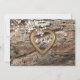 Foto da casca da árvore com moldura entalhada a ouro vintage para seus nomes ou iniciais. Lindas flores brancas adicionam um toque de elegância a este cartão de resposta. Há um convite de casamento correspondente.