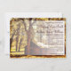 Esta fotografia rústica do país caracteriza a cabine de um caçador de madeira velho nas madeiras que sentam-se abaixo dos pinheiros altos. A foto tem um efeito colorido vintage. Um lado do convite rústico do casamento do país tem os nomes dos noivos através de uma listra transparente da fita. O outro lado tem a mesma cena catita da cabana rústica de madeira com os detalhes do convite do casamento.