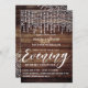 Bandas de madeira marrom e elegantes, quic, e serradas, e luzes de diamante brancas penduradas, convites à recepção de casamento da noite. Este design clássico e sofisticado é perfeito para o casal de competição de tendências e na moda. Personalize com sua própria mensagem na frente, assim como um monograma personalizado inicial no verso. Todas as impressão de fotos.