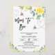 Amarelo Floral Mãe para Chá de fraldas de Abelha Convite para chá de fraldas de abelha Doce com convite para o tema Abelhas com duas abelhas e linhas de trajetória de voo em forma de coração, dois arranjos florais de folhagem amarela, branca e verde e uma imagem de cabeçalho de texto de caligrafia moderna.