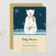 Adorável convite de chá de fraldas com uma ilustração de um pequeno urso polar com sua mãe protetora sobre um fundo azul escuro com flocos de neve brancos. Excelente de grupos de chás de fraldas neutros do ponto de vista do gênero. A imagem parece estar em três dimensões, mas é apenas um impressão. Ilustrada e projetada por Patricia Alvarez.