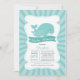 O convite para chá de fraldas de um rapaz de baleias moderna, apresentando uma linda baleia azul-mãe com a baleia-bebê colocada sobre um fundo retroradial de faixa azul com uma faixa popular e uma tipografia moderna. Sacudir o nosso doce chá de fraldas náutico de baleias para ver uma correspondência de volta para um toque especial extra. Visite o nosso compro para ver a nossa grande seleção de na moda, convites para um bebê para um chuveiro náutico contemporâneo de animais marinhos