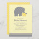 O na moda e o doce convite para o chá de fraldas apresentam um elefante-mãe e seu recém-nascido bezerro elefante. A design combina bolinhas lúdicas e listras clássicas, e um esquema de cores neutro em relação ao gênero de cinzas de amarelo-claro, amarelo-sol, médio e carvão.