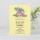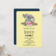 Um convite de aniversário com um design adorável de aquarela. Mamãe coala e filhote. O bebê está montado nas costas da mamãe. Em pé em um galho de árvore. Um buquê de flores de hibisco embaixo deles. Fundo amarelo banana.