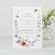 Mãe Para Ser Um Convite Para Chás de fraldas De Farinhas Selvagens. Chamado floral de flores silvestres elegantes, com belos chás de fraldas pintados à mão, flores e abelhas silvestres de cor aquática, com tipografia moderna. O convite do chá de fraldas personalizado original pintado à mão moderna com aquarela. Você pode personalizar o texto, o estilo da fonte, a cor e o tamanho em frente e atrás do convite.