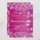 Elegante personalizou a design de convite da Quinceañera, apresentando uma elegante fronteira rico de prata em um fundo magenta e brilhante. O texto é totalmente personalizável.