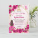 Magenta Moderna Fuchsia Rosa Dourada Glitter Sparkle Floral Rosa Butterfly Princesa Tiara Crown Quinceañera Convite