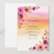 This design features a striking watercolor wash that mimics the warm glow of a summer sunset. Vibrant fuchsia, coral, and purple blooms, including delicate poppies and anemones, adorn the corners with painterly charm. The artistic blend of pink and golden hues creates a joyous and romantic atmosphere. Perfect for a seasonal event filled with color and light.