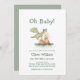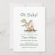 Um dragão prestes a eclodir? Querida, a maneira perfeita de celebrar o novo bebê a caminho com um chá de fraldas de teatro de conto de fadas. Perfeito para um chá de fraldas de menino ou menina, design apresenta um tema medieval fofo com dragões voadores sobre a montanha no tema de cor verde de sábio, Personalize este convite de chá de fraldas adicionando nomes, data, hora, local e outros detalhes.