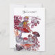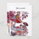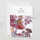 Folheto mágico colorido e extravagante de bosques encantados sentado em um cogumelo vermelho cercado por folhas roxas, amarelas e marrons de outono, castanhas, frutas vermelhas. Pintura em aquarela de 2010 por Alessandro Lumini. Design elegante, sofisticado e único, fácil de personalizar para casamento, anúncio de núpcias, cartões de mesa, agradecimentos, chá de bebê, festas de aniversário infantil, chá de noiva, festa de 16 anos, aniversário de casamento, chá de noivado romântico, Natal, feriados, escritório, reuniões de família, celebrações de Ano Novo, encontros, formaturas escolares, concertos, recitais ou qualquer outro evento que você desejar!