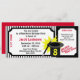 Convite de aniversário de estilo Mágico Mostrar Tíquete em preto e branco, acentuado em vermelho ou escolha cores como preferido. Personalize o texto para ajustado das suas necessidades.
