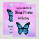 Convites Magical blue butterfly pink glitter art