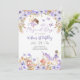 Celebrate your little ones milestone with this enchanting fairy-tale themed first birthday invitation. Featuring whimsical illustrations of fairies, unicorns, butterflies, mushrooms, and pastel florals, this dreamy design sets the perfect tone for a magical garden party. Personalize with your childs name, party details, and create a keepsake guests will adore. Ideal for fairy birthday parties, pixie hollow celebrations, and enchanted woodland themes.