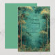 Step into a hidden sanctuary with this immersive teal forest scene. Towering, slender trees with vibrant orange-tinged canopies reach toward a misty, emerald sky, while glowing orbs of firefly light dance among the dense ferns and tiny mushrooms on the forest floor. The rich color palette and ethereal lighting create a high-fantasy atmosphere filled with mystery and wonder. As a wedding invitation, this piece is a perfect choice for a whimsical outdoor ceremony, a mystical woodland celebration, or a fairy-tale event. It sets a magical and unforgettable tone for your special day, inviting guests into a world of natural enchantment. In accordance with your preferences, no personal names have been included in this description.