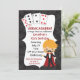 Este convite de festas personalizável do Magic Show apresenta um rapaz vestido de mágico, jogando cartas e texto personalizável.