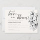 Um ramo de magnólias, desenhado à mão num lápis de grafite, decora este elegante convite de chá de noiva com tema floral com o título "O amor está no Sangue". Luxuoso, mas simples, clássico, mas chique, moderno, mas eterno.