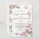 Design moderno e elegante, com moldura cor-de-água cor-de-rosa magnólia, falso quadro de ouro, divisor floral, caligrafia de "chá lingerie"; no buquê floral traseiro, nome da noiva. Use a ferramenta Personalizar para adicionar suas informações e fazer alterações. Para ver os itens correspondentes, visite minha Coleção Floral Magnolia.