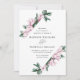 Convites elegantes para casamento floral com detalhes de casamento cercados por um quadro geométrico de flores de magnólia cor-de-água rosa e folhas verdes de eucalipto. O reverso dos convites para o casamento de magnólia apresenta um sólido fundo verde de eucalipto. Projetado para coordenar com nossa coleção de casamento Magnolia & Eucalyptus.