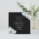 Magnolia Floral Magnolia, Elegante Preta e Branca, Convite para Casamento Floral projetado com flores brancas de magnólia em negrito sobre fundo preto com texto branco. O texto da frente inclui: Junto com suas famílias, os nomes dos Cheios da noiva e do noivo, Solicite a honra de sua presença em seu casamento, a data e hora, o local e a morada do casamento, a recepção para seguir. O texto do lado inverso inclui: RSVP e os detalhes do contato. Para personalizar este elegante Convite Floral Magnolia, basta inserir seus detalhes em nosso modelo fácil, substituindo o texto de amostra. Certifique-se de visualizar toda a Coleção para papelaria e acessórios correspondentes.