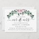 Este convite para festa de noivado apresenta uma bela design de aquarela de magnólias cor-de-rosa e ramificações de eucalipto. Belo roteiro com elogios lê "O Futuro Sr. e Sra." ao lado de seus detalhes pessoais de celebração na tipografia moderna.