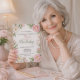 Celebre um marco notável com este elegante convite de 75º aniversário que apresenta um gracioso design floral inspirado em um clássico jardim inglês. Peônias rosa suave e magnólias brancas cremosas enquadram o layout com folhagem verde exuberante, criando um visual sofisticado e atemporal perfeito para homenagear uma mulher especial que está fazendo setenta e cinco anos.