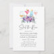 Flores roxas num convite para o ensaio de festas de noivado/casais pintados à mão.
