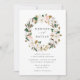 Convite para casamento floral Elegante de primavera com seus nomes cercados por uma coroa de magnólias brancas, rosas cor-de-rosa pinceladas, flores de algodão e folhas verdes. Adicione seus detalhes de casamento abaixo para um convite perfeito para primavera e casamentos de verão.