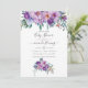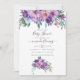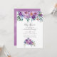Convite para chá de fraldas floral roxo com tipografia elegante de escrita manual personalizável para suas especificidades de evento.