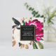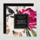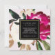 Estes belos convites para o casamento apresentam um design moderno de magnólia de aquarela em tons vívidos de rosa, branco, ouro e verde com um centro de quadros preto e dourado.