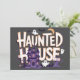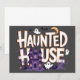 Ce design festif et ludique capture l'esprit d'Halloween avec une typographie saisissante et une illustration d'une maison hantée classique, accompagnée de fantômes souriants et de chauves-souris volant dans une nuit sombre. Parfait pour des décorations d'Halloween familiales, des invitations à des fêtes ou des événements thématiques, ce visuel mélange habilement la peur et l'amusement. Les couleurs sombres et les éléments fantomatiques créent une atmosphère à la fois mystérieuse et joyeuse, idéale pour les petits et les grands amateurs de frissons.