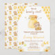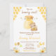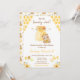 Este convite de chá de bebê em aquarela fofo e caprichoso apresenta um adorável urso encostado em um pote de mel, abelhas, favo de mel, arranjos florais e balões. O texto combina fontes manuscritas e sem serifa para uma aparência elegante e moderna. Isso é perfeito para um chá de bebê com tema de abelha ou urso.