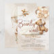 Mal Podemos Esperar! Convite de Chá de Bebê | Tema de Urso de Pelúcia com Balões Marrons e Brancos