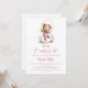 Celebre a chegada iminente do seu pacote de alegria convidando seus amigos e entes queridos para a sua festa de bebê com este convite com um adorável ursinho de pelúcia vestindo macacão rosa e pulando corda. O texto personalizável permite que você adicione facilmente seu nome, data e horário da celebração e as informações de confirmação de presença. Uma variedade de tipos de papel e estilos de canto estão disponíveis para seus convites únicos, juntamente com a opção de baixar se você preferir um formato digital.