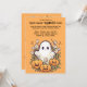 Este convite da festa de Halloween adota um estilo de desenho animado bonito e alegre, com um fantasma amigável ao lado de três abóboras sorridentes. O fantasma tem uma expressão divertida, irradiando calor e diversão, enquanto os três abóboras têm sorrisos grandes e amigáveis que se somam à atmosfera iluminada. Ao redor do fantasma e abóboras são minúsculos margaridas, espalhadas brincalhão pela cena, trazendo um toque caprichoso para o design de Halloween. O fundo é uma laranja vibrante, dando o tom perfeito para um evento divertido e festivo de Halloween. A laranja brilhante contrasta lindamente com o branco do fantasma e as vibrantes tonalidades de laranja das abóboras, fazer em que as personagens se destacam. As margaridas acrescentam um elemento doce e inesperado ao tema do Dia das Bruxas, fazer que o design se sinta fresco e convidativo. No topo da frente, a legenda diz: "Você é Convidado para uma Bash HALLOWEEN!" O texto é escrito em uma fonte divertida, estilo cartoon, que complementa o tema fofo e os pop contra o fundo laranja. Abaixo da legenda, há espaço para detalhes personalizáveis, como data, hora e local da parte, permitindo uma personalização fácil. O verso do convite continua com o mesmo fundo laranja, oferecendo espaço extra para texto ou notas adicionais. Este espaço pode ser usado para incluir mais detalhes como "Figurinos bem-vindos!" ou "Junte-se a nós por uma noite de diversão e guloseimas!" Esta design é perfeita para uma celebração de Dia das Bruxas alegre e alegre, misturando personagens bonitos e amigáveis com um brilhante esquema de cores festivas.
