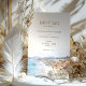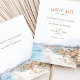 Esta bela carta salva-vidas capta a elegância de devolução de Malibu, Califórnia, com uma ilustração impressionante de aquarela apresentando palmeiras altas contra um pano de fundo de colinas rolantes e céus azuis. Os tons suaves de aquarelas do azul-do-mar, bege arenoso e verde-luxuoso evocam a vibração relaxada de uma celebração à beira-mar, perfeita para um casamento de destino ou um evento de temas costeiros. A elegante tipografia em tons de terra complementa a cena da aquarela, dando o tom para um romântico dia de casamento ensopado pelo sol. Ideal para casais planejando um casamento em Malibu ou em qualquer lugar ao longo da costa da Califórnia, este cartão oferece uma mistura de beleza natural e estilo artístico.