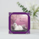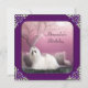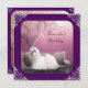 Festa de Aniversário da Menina de Convite Festa de Cereja Rosa Blossoms, Cachorro Maltês Branco parado no banco do parque. Quadro de Trilha Roxo e Prata