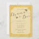 Two adorable hand drawn honeybees are investigating the text on this charming baby shower invitation. The background is a hand drawn and richly colored honeycomb.