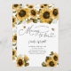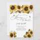 Cartão de modelo de convite para abelha russo, com ilustração aquosa dos girassóis amarelos e da respiração do bebê com abelhões. Perfeito para um chá de fraldas de verão. O texto diz "vamos a Mamãe para ser".
