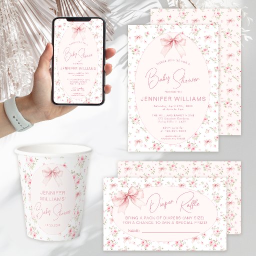 Pink Shabby Chic Roses Cute Bow Baby Girl ShowerCriado por Ramune Freze