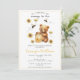 Abelhas florais de girassol amarelo de aquarela com um urso fofo com convite para chá de fraldas neutro em termos de gênero do mel.
