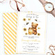Temática de abelha floral de girassol amarelo de aquarela com ursinho de pelúcia bonitinho com convite para chá de fraldas neutro em termos de gênero.